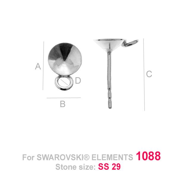 A=9,00 mm; B=6,20 mm; C=13,60 mm; D=1,70 mm, Sterling Silver (AG-925)