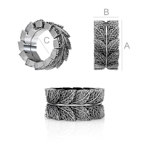 A=9,00 mm; B=4,20 mm; C=6,40 mm, sterling silver (AG-925)
