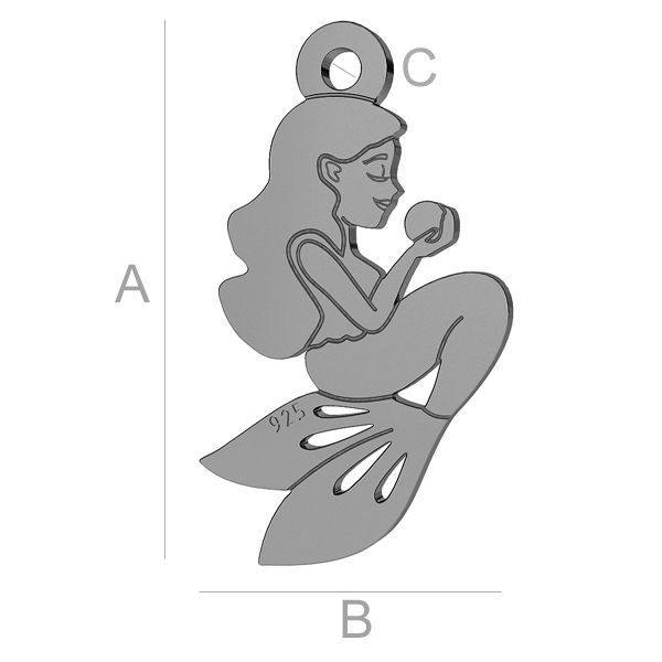 A=16,50 mm; B=9,00 mm; C=1,20 mm, sterling silver (AG-925)