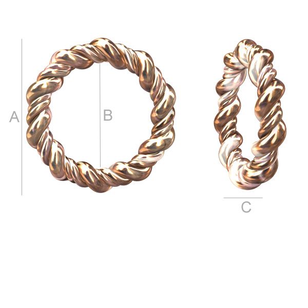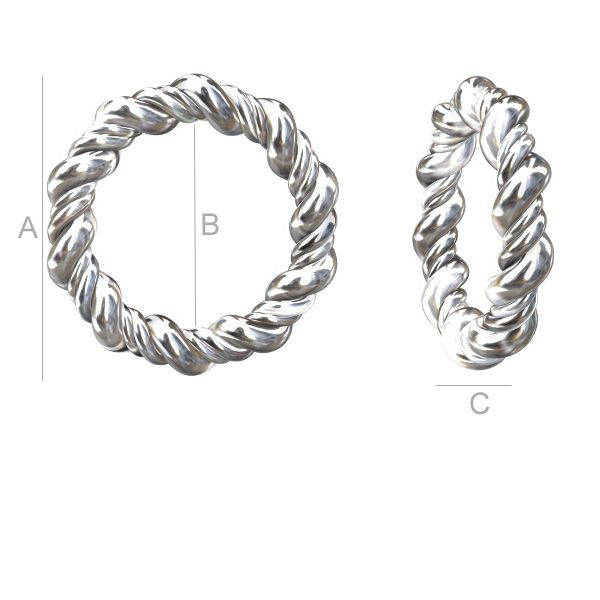 A=12,50 mm; B=8,50 mm: C=2,00 mm, sterling hopea (AG-925)